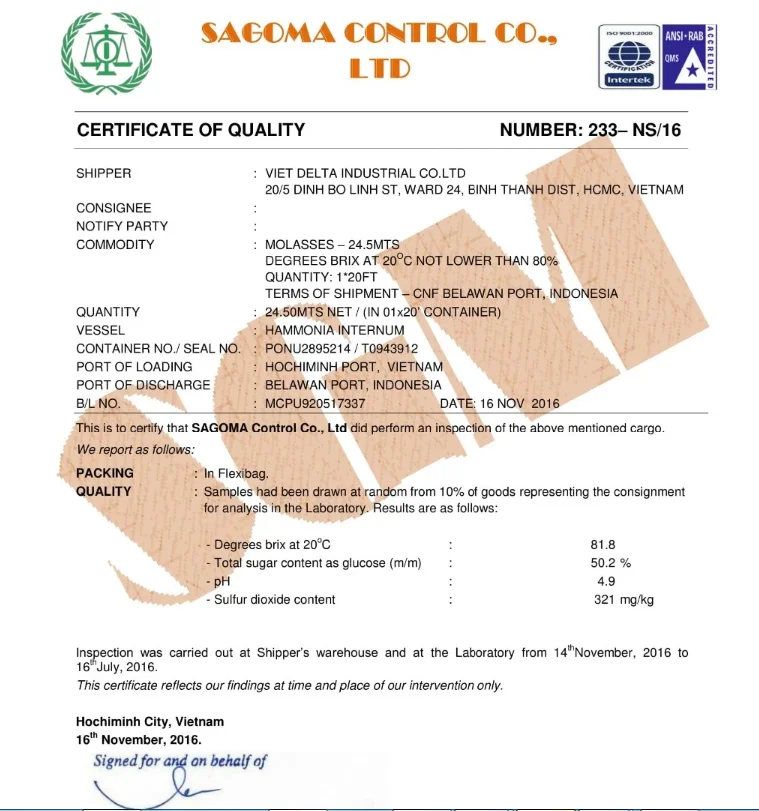 Jenny from Delta is an industrial company that is one of the leading companies in the export of agricultural products from Vietnam, with more than 13 years of experience. Hope you pay attention to our Sugarcane Molasses