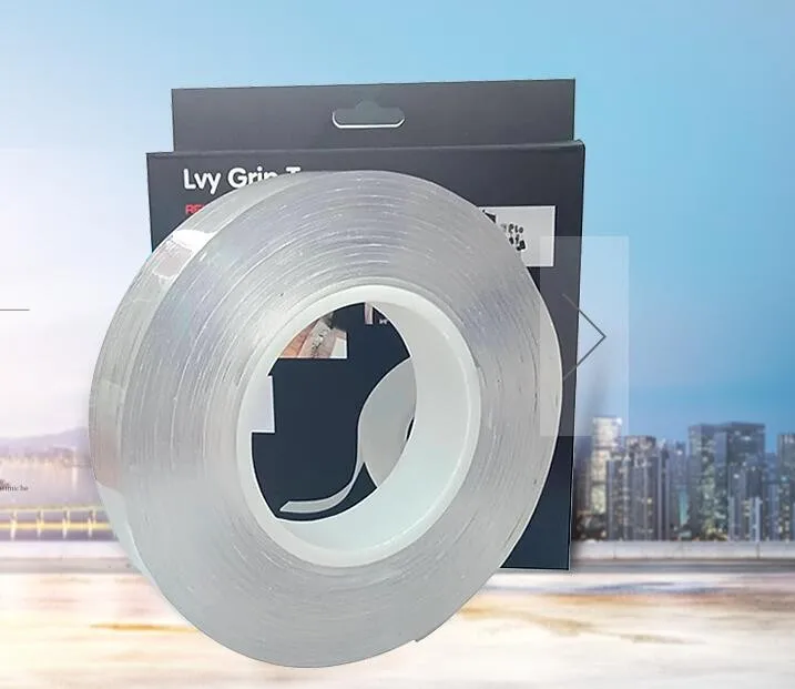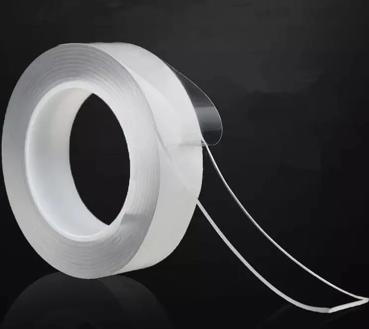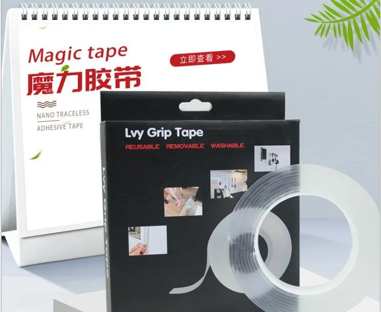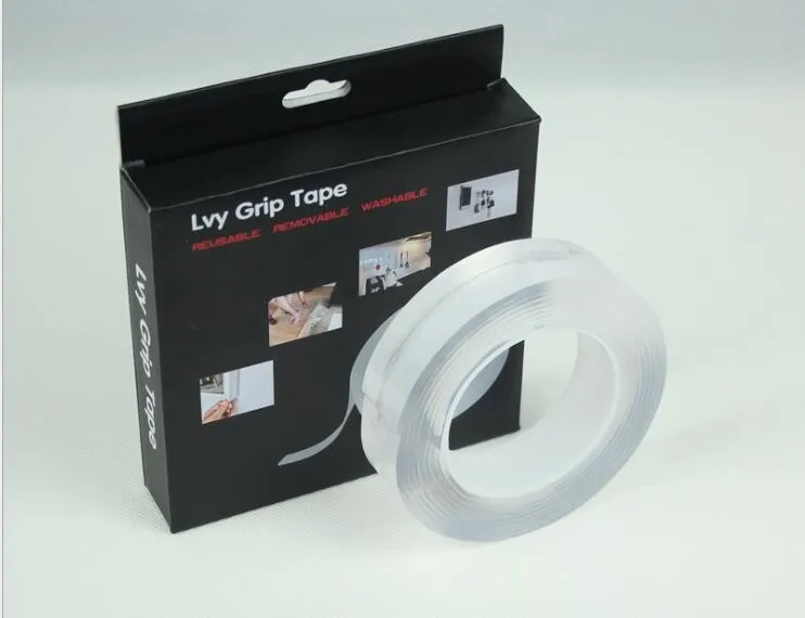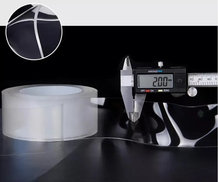 Washable Adhesive Tape nanoTape 5M/16.5Ft,The Reusable Adhesive Silicone Tape,Free to Remove, Reusable Traceless,Stick to Glass, Metal, Kitchen Cabinets or Tile Nano Tape (Transparent, 2mm)