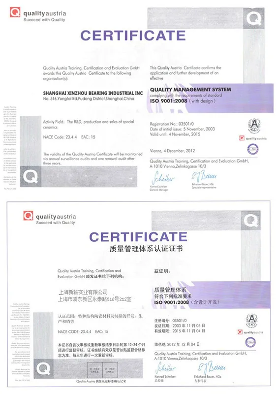 PEEK and PI,new engineering plastic materials,was proven to be with the best machanical strength,dimensional stability and high temp,endurance among all the known engineering plastice.PEEK's long terms working temperature is 260℃,PI's long trem using temperature is as high as 300℃.PTFE was proven to be working under 180℃,PVDF using temp.:150℃.It is with excellent corrosion resistant,can be only dissolved or damaged by concentrated sulfuric acid,it still works under medium acid and alkali corrosive environment.Thus it is used for high precision bearing manufacturing,working under harsh environment,the only advantage is high using cost due to raw material.Generally,inner and outer ring are made of PEEK or PI,cage is made of PTFE,PEEK,PI;ZrO2 or Si3N4 ceramic balls as rolling elements.