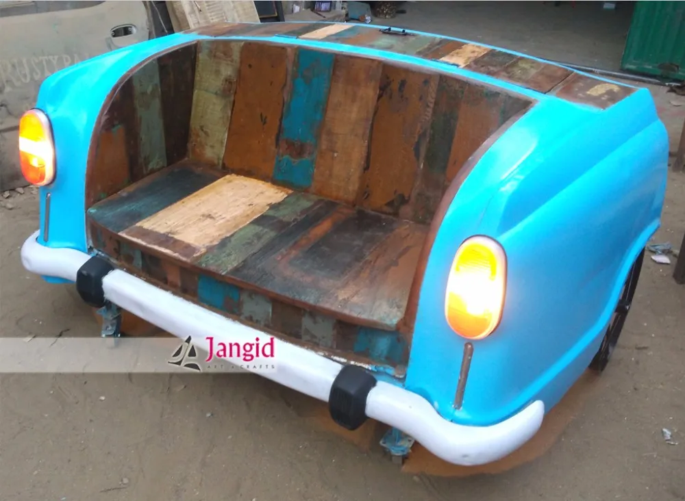 This is Vintage Iron and Wooden Ambassador Car Sofa. This sofa is recycled from old car body parts. We are Manufacturer and Exporter of All type of Industrial Iron and Wooden Furniture Such as TV cabinet, Almirah, Dining Table, Writing Table, Stool, Bar stool, Chair, Bar Chair, Dining table set, Console table, Side Table, Ottoman, Bookshelf and many more. Please contact us for more information of this product.