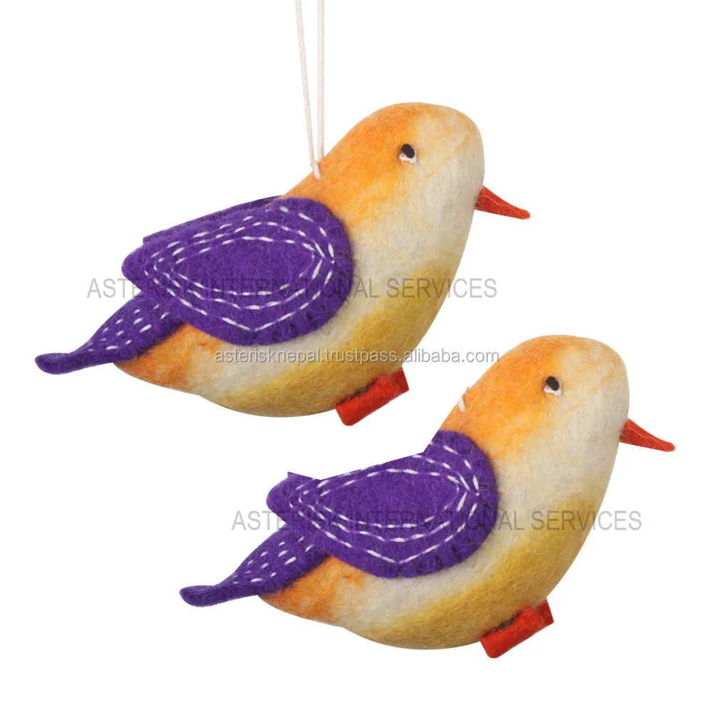 Wet Felting Birds for Hanging - Handmade Cute Christmas Birds - 100% NZ Wool, Eco-friendly Hobbycraft Supplies - Felt Ornaments