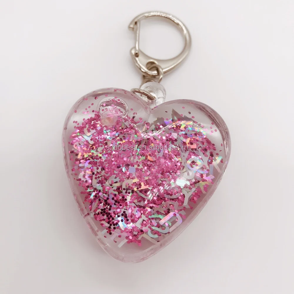 Heart Shape Key Ring, Choose Your Own Glitter and Toys.