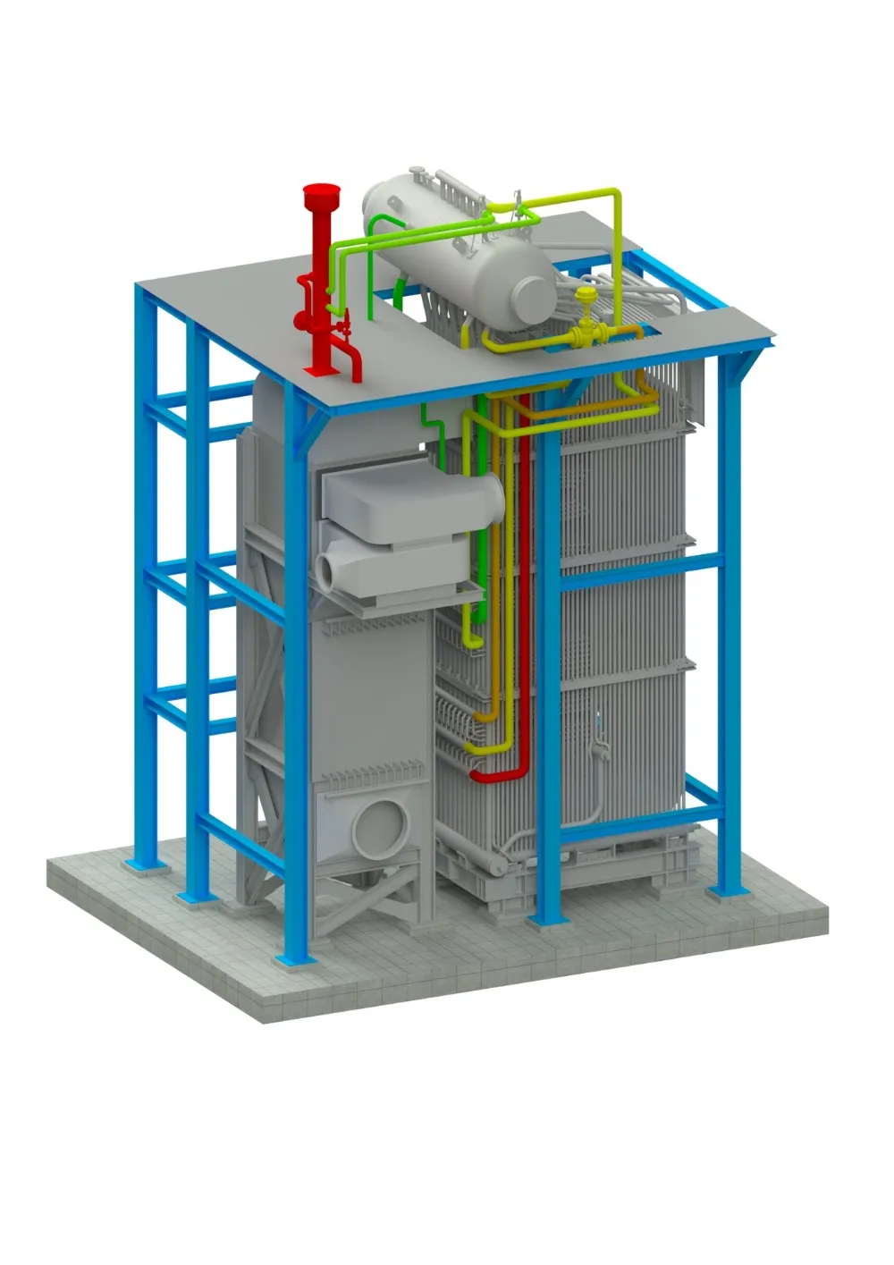 automatically applied (i.e.: fuel is able to be in separated or mixed or be used even with different sizes...).The high effciency and ease in operation and maintenance are also the strong points of this burning process.This burning process can be combined with the boiler body design of ERK Eckrohrkessel to create the perfect product for the Users.