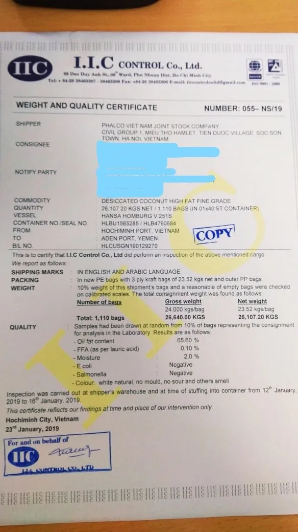 DESICCATED COCONUT HIGH FAT / LOW FAT