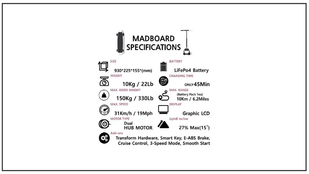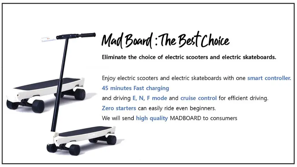 MADBOARD Electric Transformation SkateBoard & Scooter with GOOD QUALITY MADE IN KOREA
