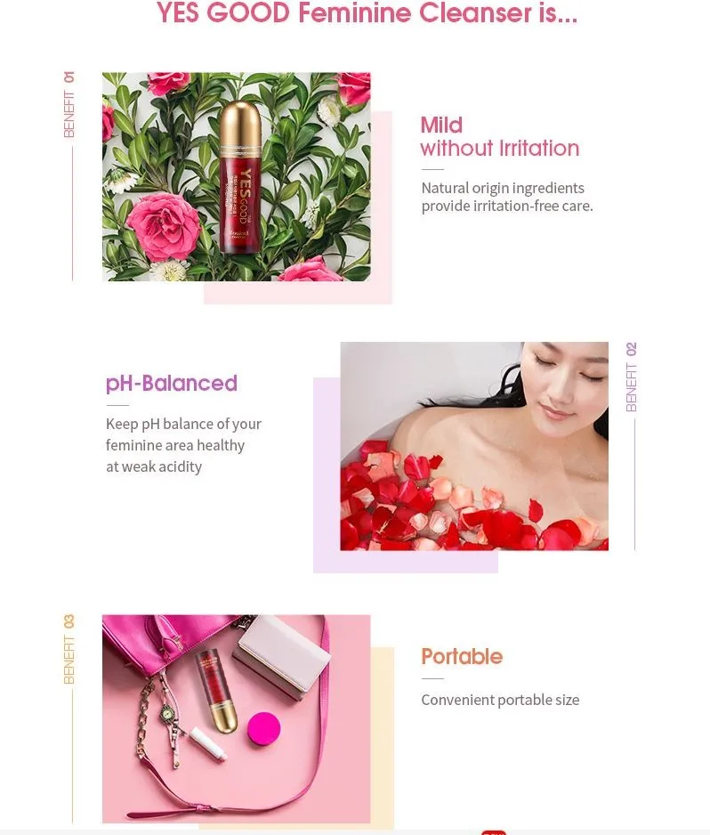 YES GOOD female cleanser is a special product made to solve woman's secret problem. It helps to reduce the itchiness and unpleasant smell of a woman's secret area and keep the pH balance of the vagina environment at weak acidic status. Yes Good provides enough moisture to the dry area to keep it moist and smoothy. It also makes the stretched area firm and resilient.