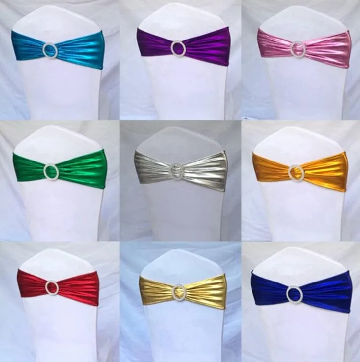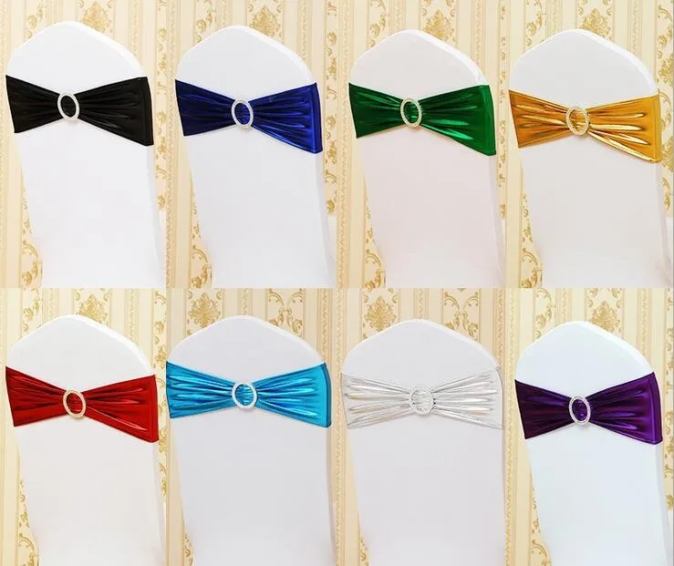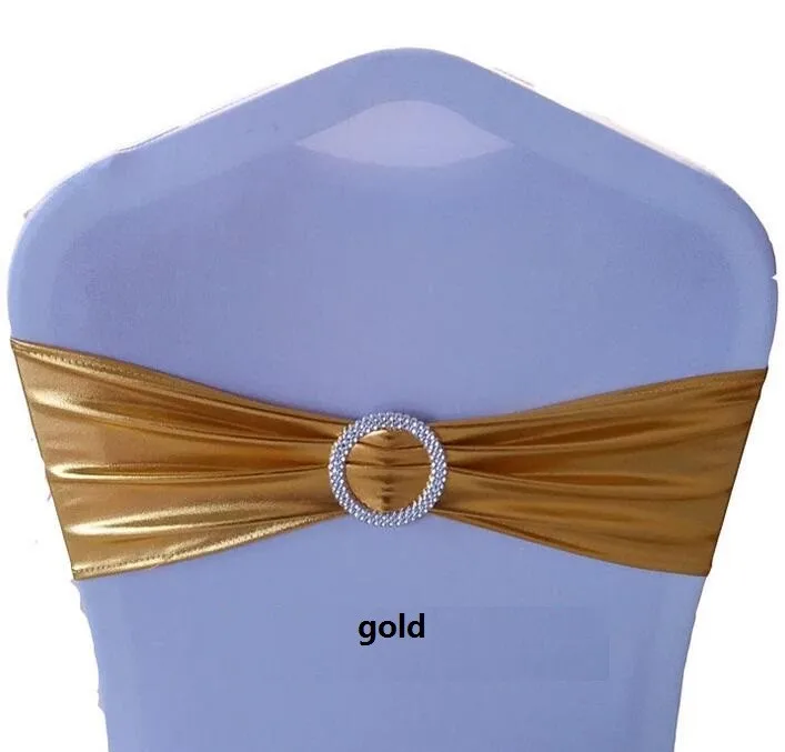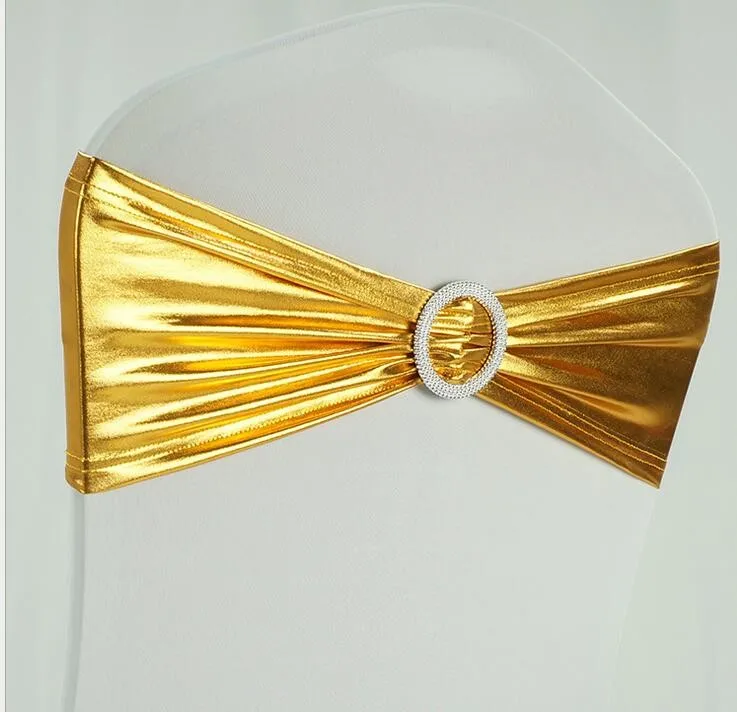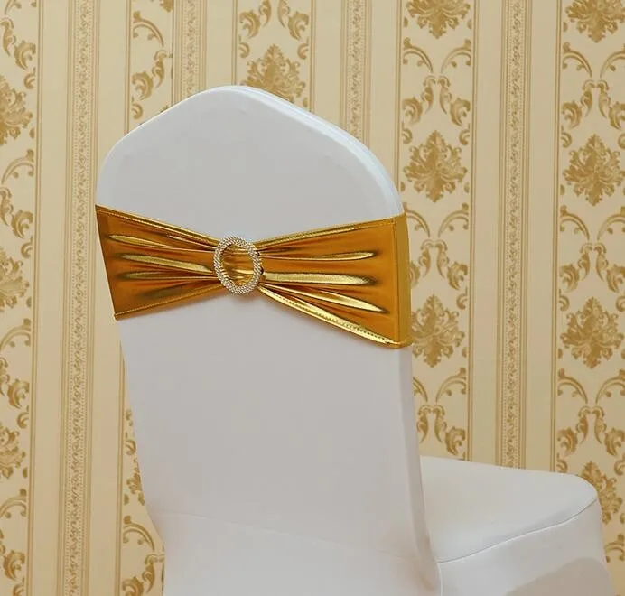 Chair Cover For Wedding Events Decoration Metallic Gold Spandex Chair Bands With Diamond Buckle/Chair Cover Sash/Chair Band