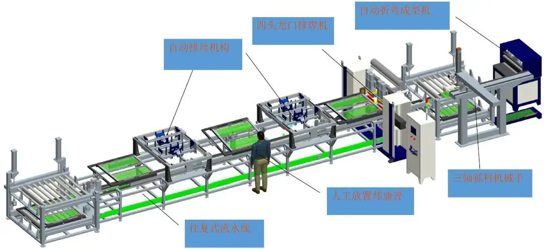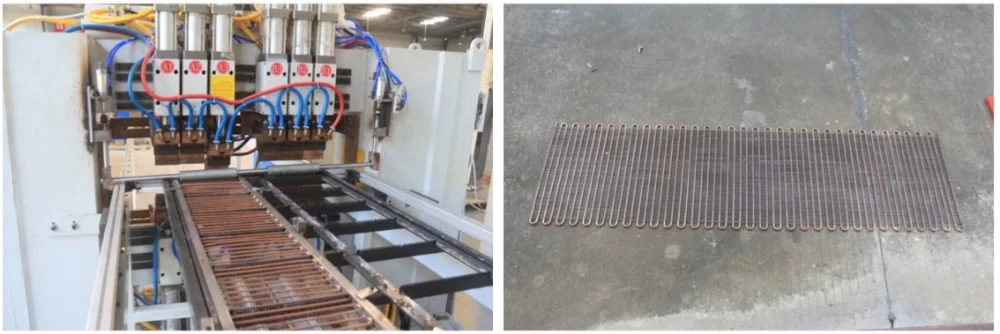 HWASHI Six-Head Refrigerator Condenser Automatic Welding Machine is designed for welding the condenser. Besides, we can also provide the whole production line machine for condenser. The condenser production line machine including Wire Straightening and Cutting Machine, Bundy Tube Straightening and Cutting Machine, Bundy Tube Bending Machine, Condenser Welding Machine, Condenser bending machine, Tube End Expanding Machine and Tube end shrinking machine, etc. This high quality automatic refrigerator condenser cnc automatic welding machine is customized for welding condenser as well as wire mesh. According to the product specification provided by your company, and in order to increase efficiency and production rate, the machine is designed as two feeding fixture system, automatic wire feeding system, automatic mobile system, automatic welding system, and cooling system.