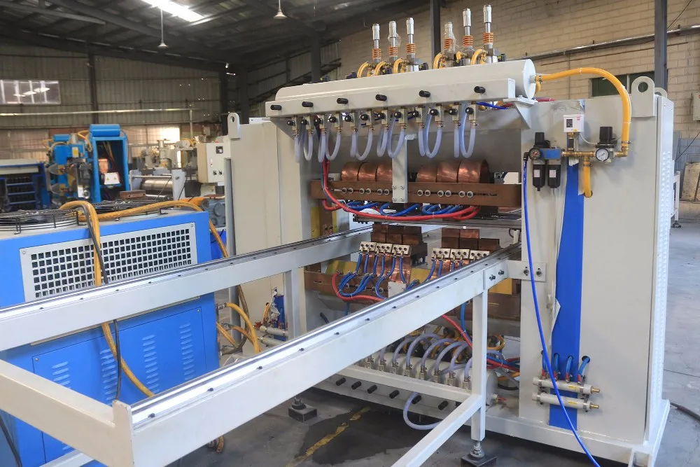 2. Row Welding Structure: 6 sets of welding electrodes are installed on the beam and equipped with slide guide that could move horizontally. It is convenient to adjust the distance of welding spot so it is suitable for welding the work pieces with different pinch. The welding program of row welding electrode is flexible and various kinds of welding programs are available. So you could choose to weld from the middle to the sides or from the sides to the middle or single welding. Truly achieve the stable, reliable and good consistency of welding effect.