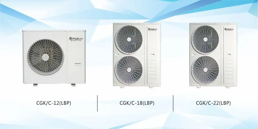 Air source heat pumps are designed for domestic/commercial hot water and house heating with lowest air temperature is above -15℃.