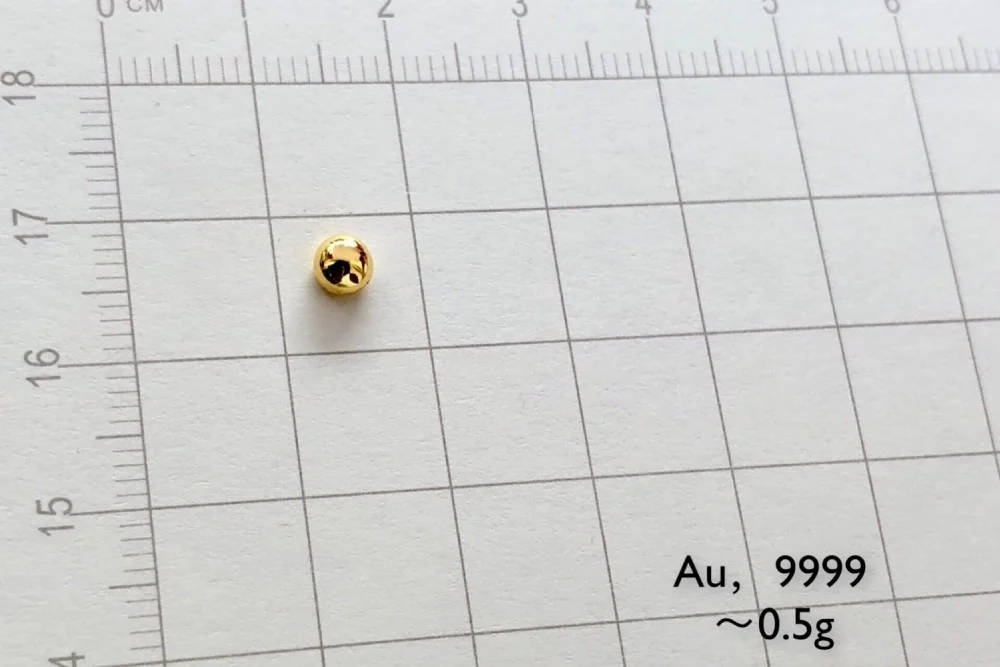 These beautiful pieces of solid Gold metal are melted in our own high temperature furnace. They are very high purity (99.99%) .