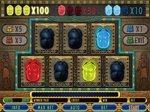 When player accumulates 3 beetles from the same color, player wins an extra bonus of “Bet x beetle multiply” shown at the top of the screen.