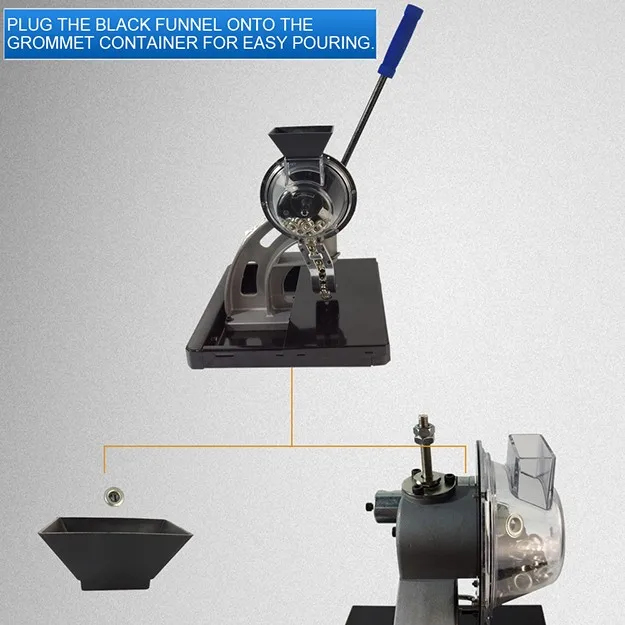 just pour the eyelet into the designated box, and then pull the handle.