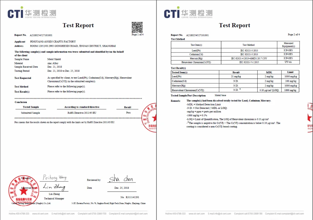 Ansen Crafts Pass ROHS and so on inspection.