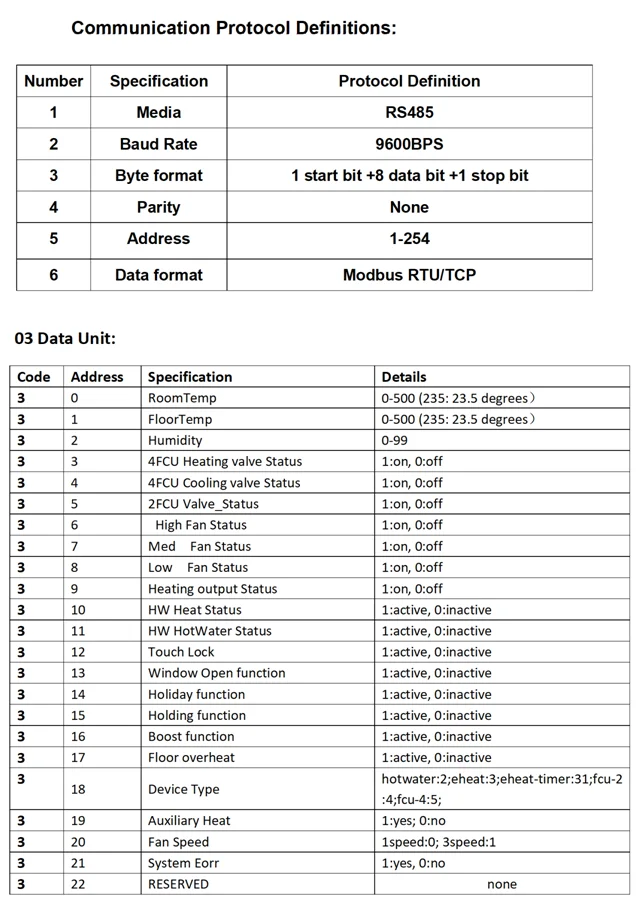 Thermostat Output | SPST relay for 2-pipe models 2 SPST relay for 4-pipe models |