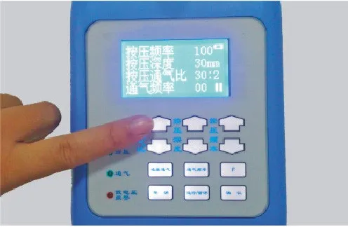 \t12,Default mode:Press the ventilation ratio: 30: 2,press depth 30mm,press frequence 100 pcs/min; Ventilation quanity 350ML |