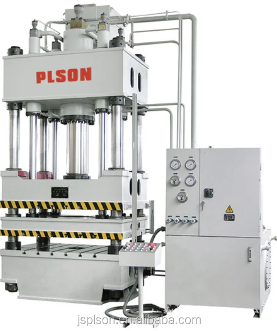 This hydraulic press machine has two kinds of electric apparatus control system with PLC which has three operation modes: manual, semi-automatic and automatic. It has pressure hold and time delay functions while pressing shape.