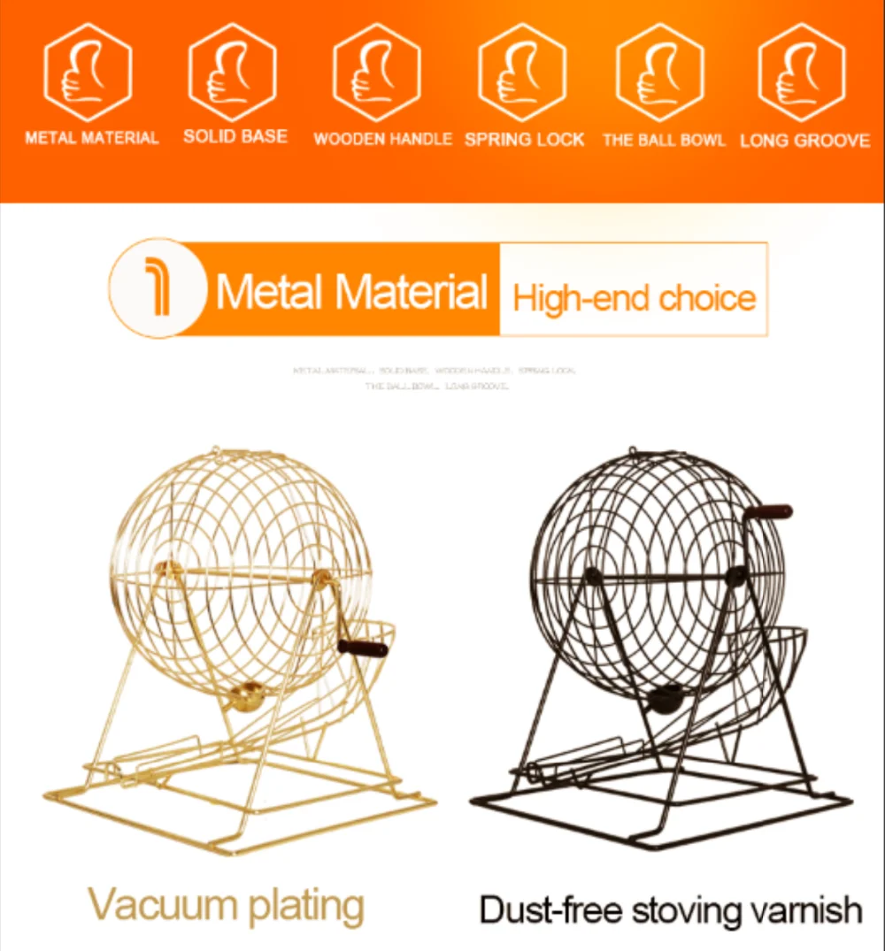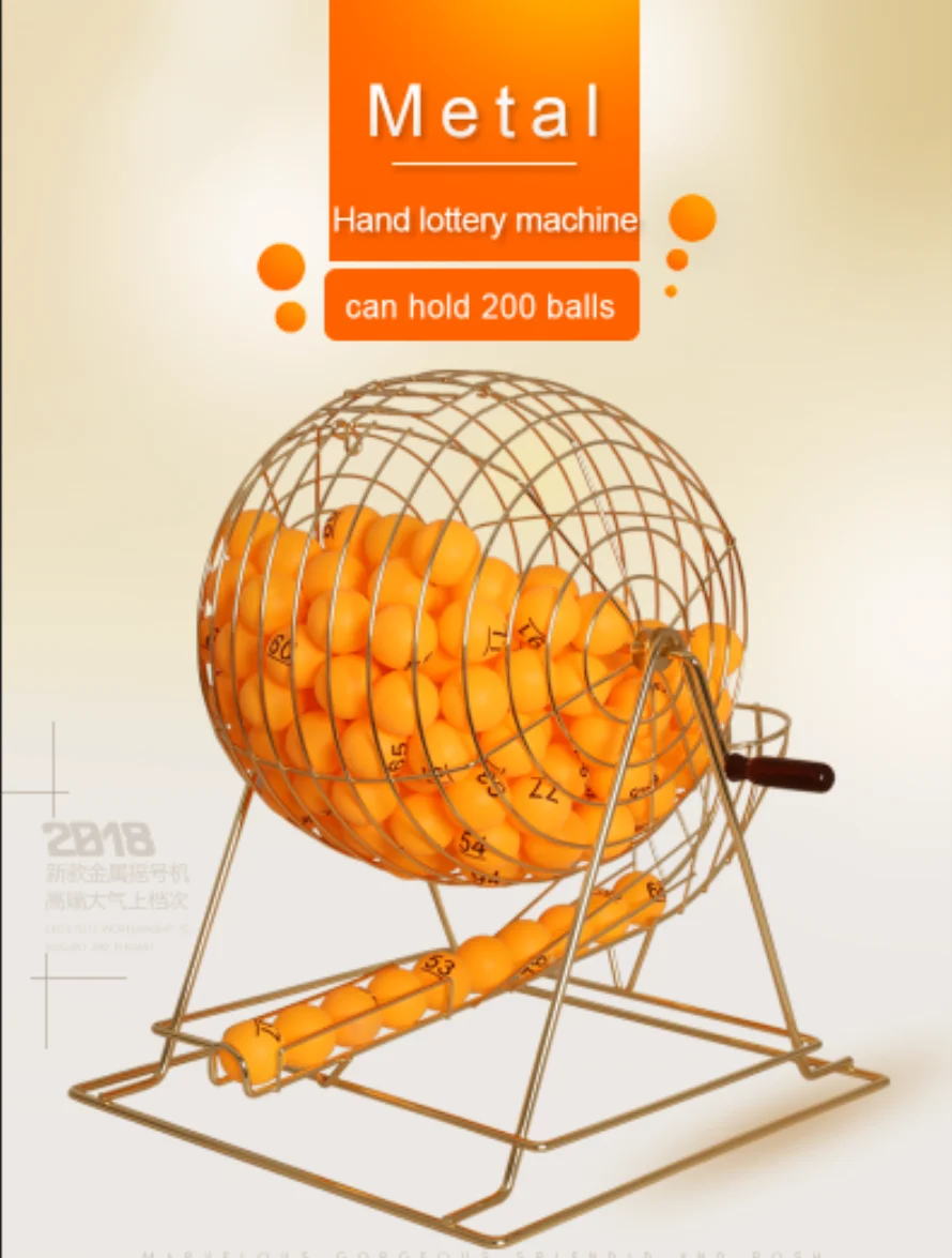 Lottery machine or Bingo machine is made from metal materails. It can use by hand freely.