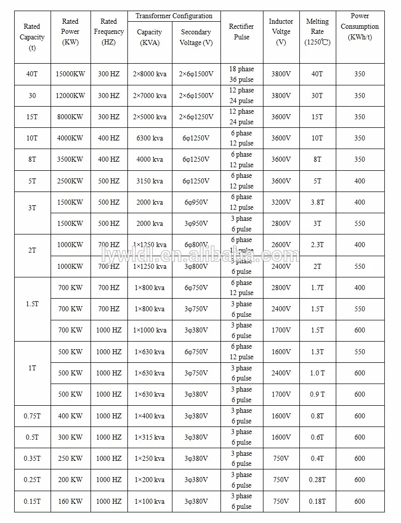 1.Melting capacity range from 0.1ton to 50 tons