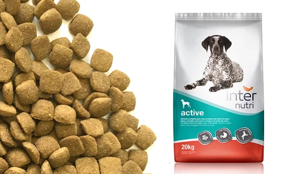 Complete feed for active adult dogs.