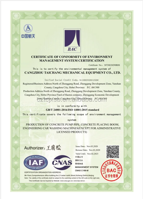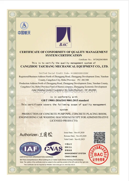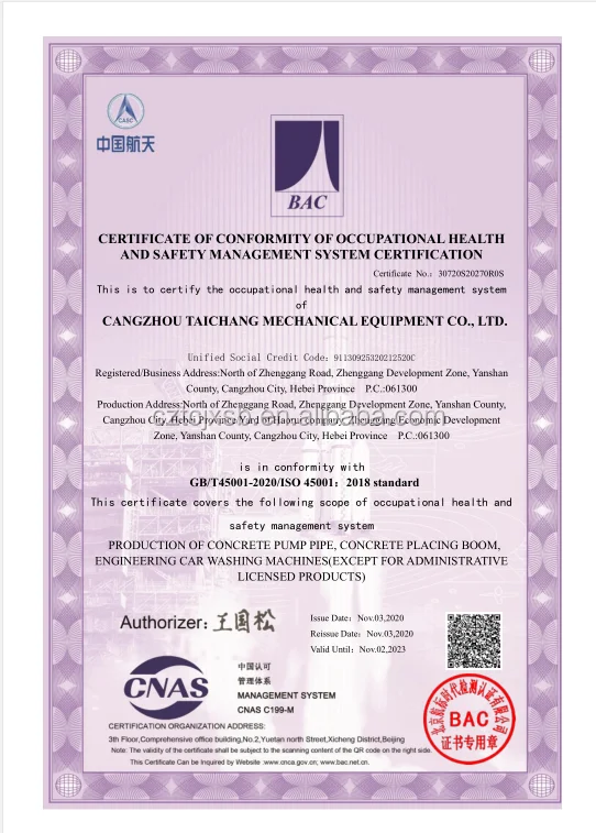 Cangzhou Taichang Mechanical Equipment Co., Ltd., specializes in concrete pump pipes, elbows, clamps, concrete placing boom, all