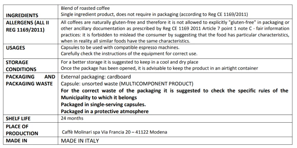- PURCHASING The selection of green beans is very accurate and is made by a panel of experts under Mr. Alberto Molinari supervision. If the green beans sample do not pass their test it is automatically reject and not purchase.- NO OXIGEN Caffe' Molinari is offering the latest packaging technology of the PRESERVED & MODIFIED ATMOSPHERE. The 5 STELLE range of products allow the final customer, at the tin opening, to taste the full flavour and fragrance, typical of freshly roasted coffee & 3 years shelf-life. Only 2 roasters in Italy may offer You roasted coffee in preserved and modified atmosphere. So just another brand can compete with us.