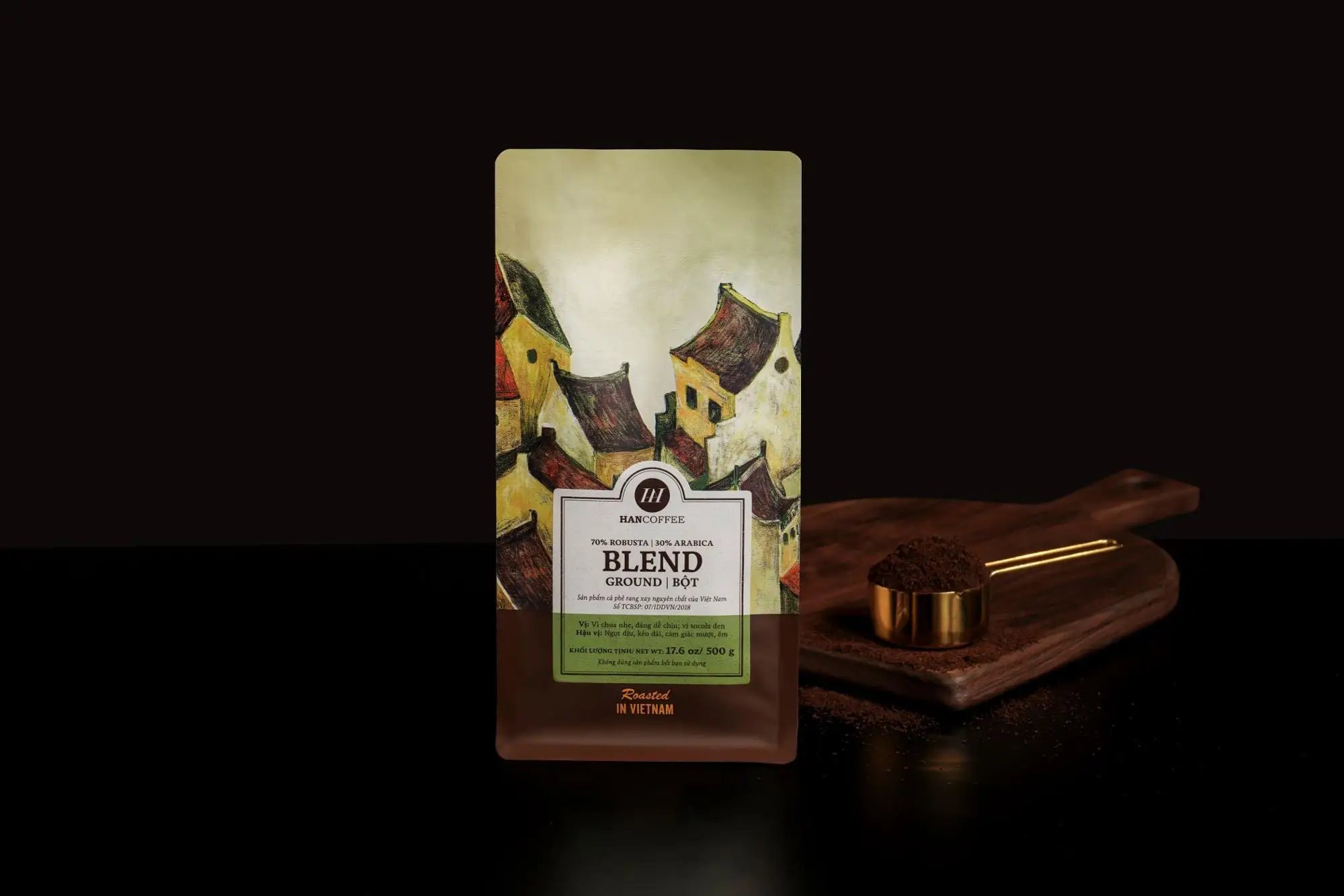 Through our unique blend of Arabica and Robusta beans and our dark roasting process, we naturally produce STANDARD BLEND GROUND COFFEE keeping Vietnamese soul. There are no additives or additional caffeine added, so delivering the full definition of a standard cup of coffee, saving the great traditional value of Vietnamese coffee. Only use with Vietnamese coffee filter "Phin". By adding some ice or milk, you will get an unforgettable aroma and taste of coffee cup.