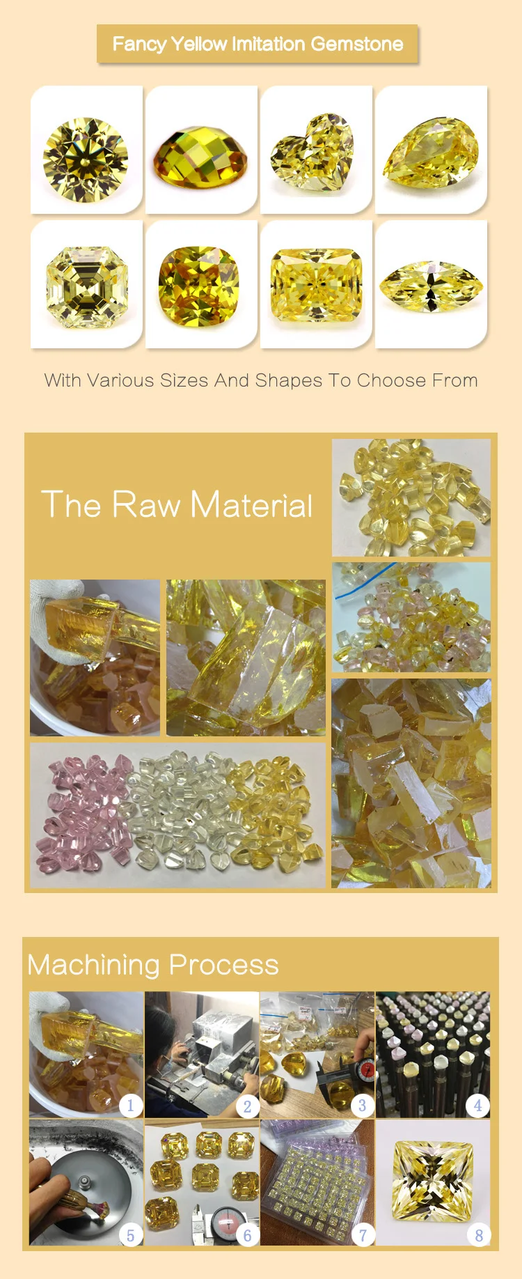 Product name: | hand polish 5A grade 6x8mm loose canary yellow octangle shape radiant cut cubic zirconia stones | ||||||