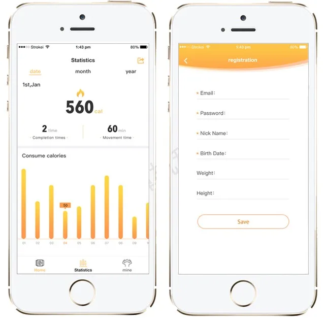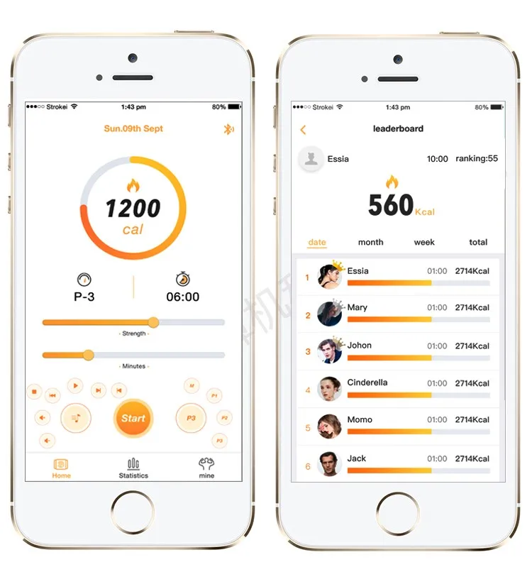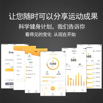 APP bluetooth-connection /One-key sharing moment/diagnosing workout data /calories memory/intelligent alert