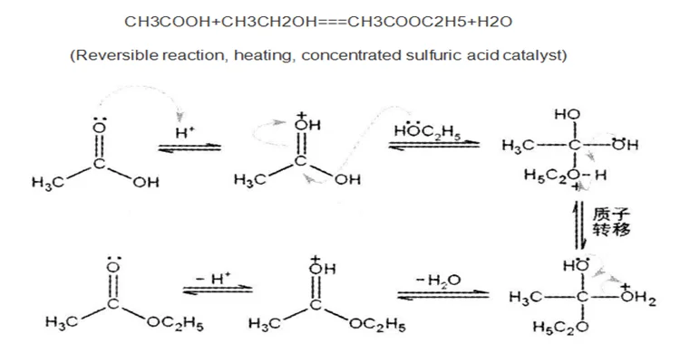 Direct esterification.Acetic acid was obtained by direct esterification of acetic acid and ethanol with sulfuric acid taste catalyst, and then refined by dehydration and fractionation.