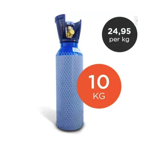 Cylinders are available in many shapes and sizes. The smallest and most sold is the 2.7 litre tank, which contains 2kg of nitrous oxide. We also have 5 litres (3.75 kg nitrous oxide), 10 litres (7.5 kg nitrous oxide), 13.5 litres (10 kg nitrous oxide), 20 litres (15 kg nitrous oxide), 27 litres (20 kg nitrous oxide), 50 litres (37.5 kg nitrous oxide). Usually we have all sizes in stock. Ask about the possibilities.