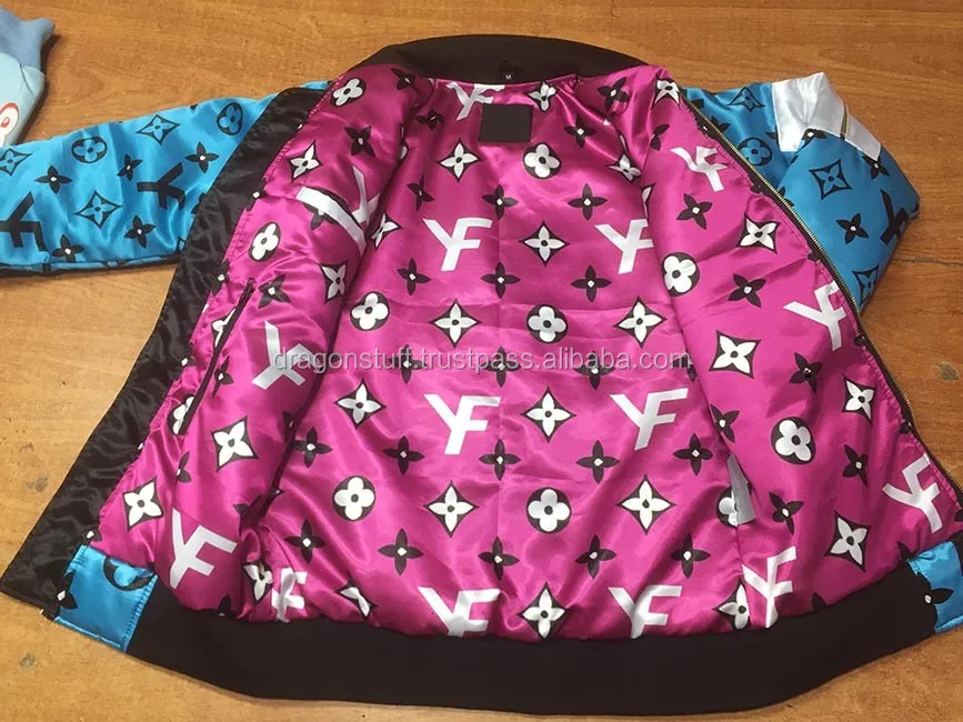 We can customize varsity jackets with all over sublimation prints and also sublimation linings could be done. We use computerized printing technology the dye is transferred onto the fabric through a heat process.