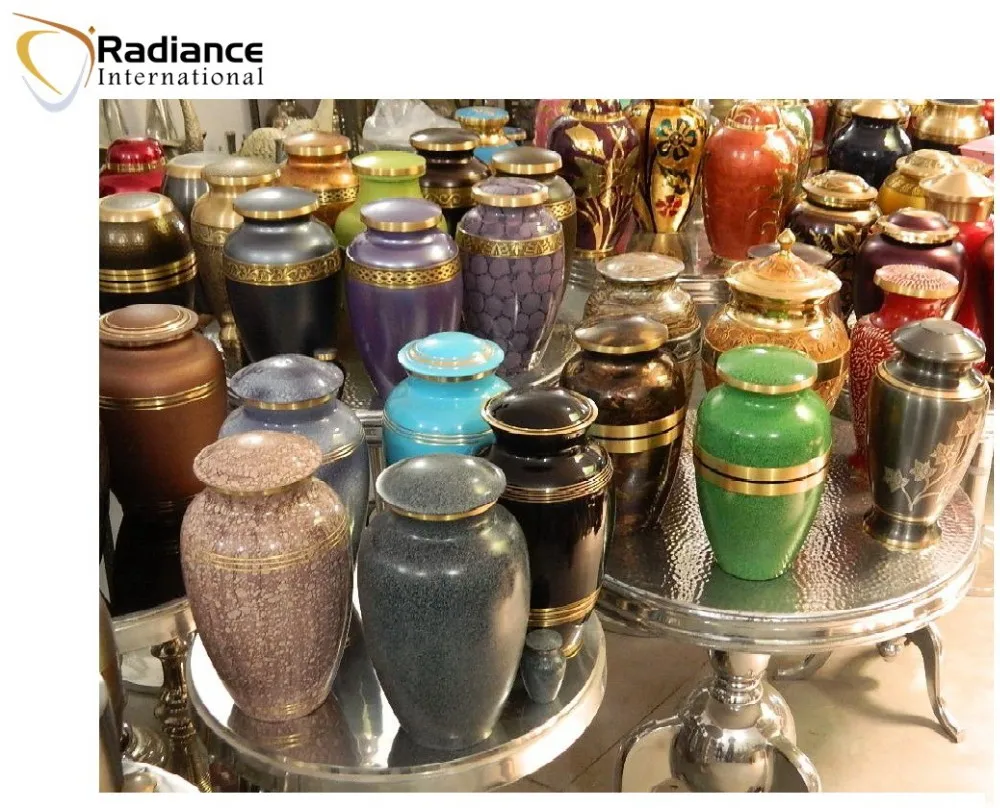 3).Traditional Urn are hand edged, made of Solid Brass, Aluminum & enamel , Meena , Stone , Leafing color by hand or finished, 'ike Silver /Gold, Antique Brass, Copper Pewter, Black pewter, Matt Gold, Matt slate, Rainbow Finish Nicely done via Electroplating Method for durability, and use sing Lacquered for glossey finish
