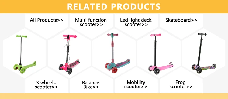 A: We are a factory of kids kick scooter, 3 in 1&5 in 1 scooter, foot scooter, e scooter,