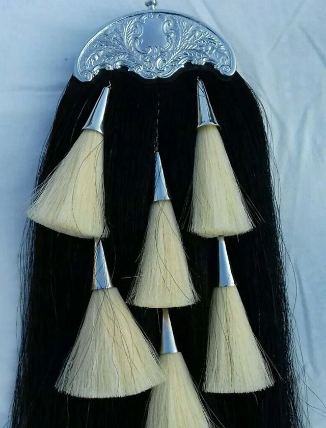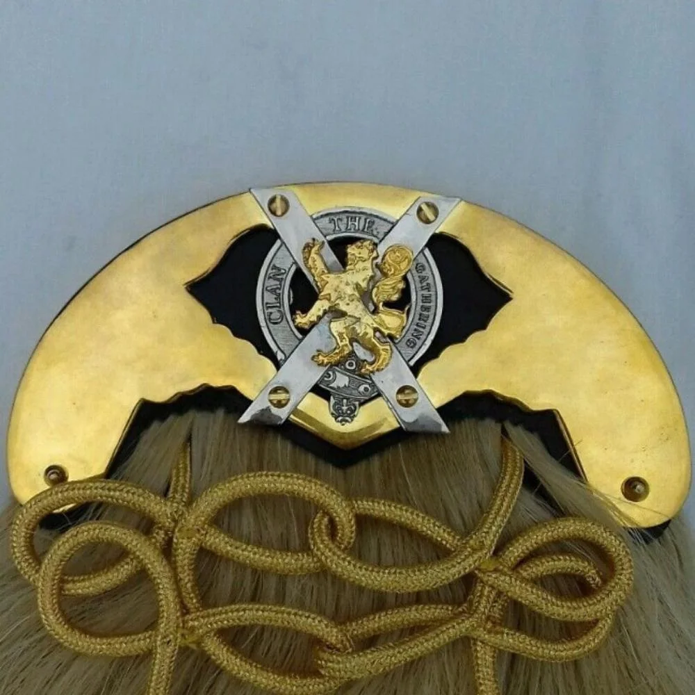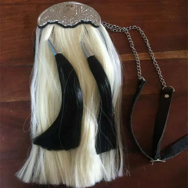 CLAN THE GATHERING Long Horse Hair Sporran With Brass Cattle 6 Teasels Metal Badge
