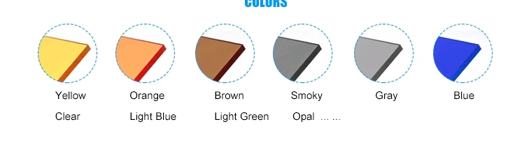 5.Standard color : Clear, Green , Blue , Smoke , Brown , Opal 6,For large orders : color and size can be custom-made.