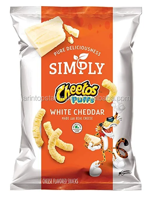 Simply snacks have great taste, with no artificial flavors or preservatives. They're the snack that you feel good about sharing with the people you love most. Delicious Simply Cheetos Puffs White Cheddar Snacks are a treat to enjoy with the whole family Puffs White Cheddar Cheese Flavored Snacks: They're the snack that you feel good about sharing with the people you love most. Delicious Simply Cheetos Puffs White Cheddar Snacks are a treat to enjoy with the whole family!