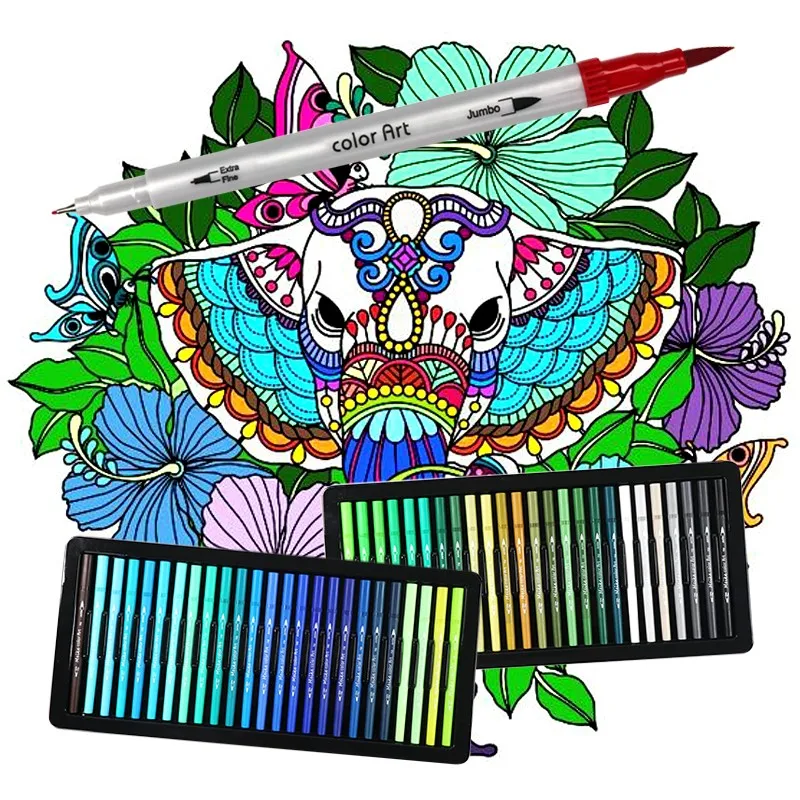 Contents | Dual tip: 1-6mm brush & 0.4mm fine point Brush tip perfect for coloring Fine point ideal for outlining 100 colors ink available | |||||