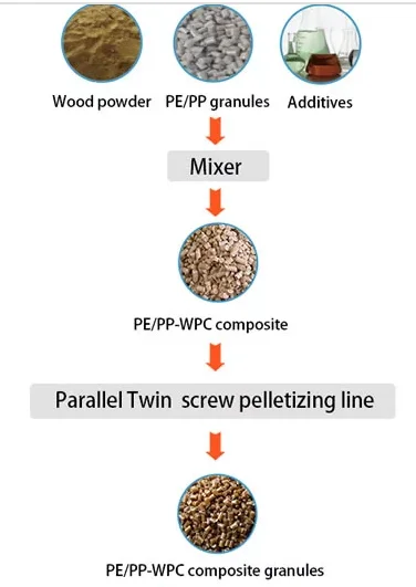 3. Make WPC granules with WPC Parallel Twin-screw Pelletizing Line SWMSZ-L3