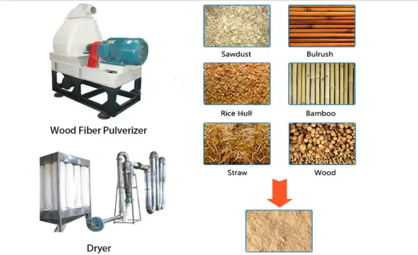 1.Wood chips milled into powder with SWMF400, if wood is wet, dry in SWGZ40