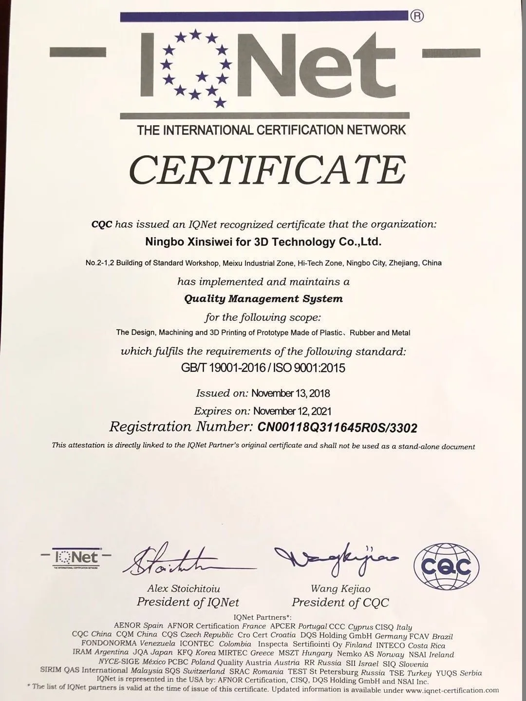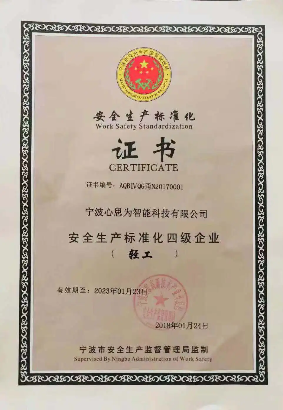 Ningbo Xin Si Wei Intelligent technology Co. Ltd.