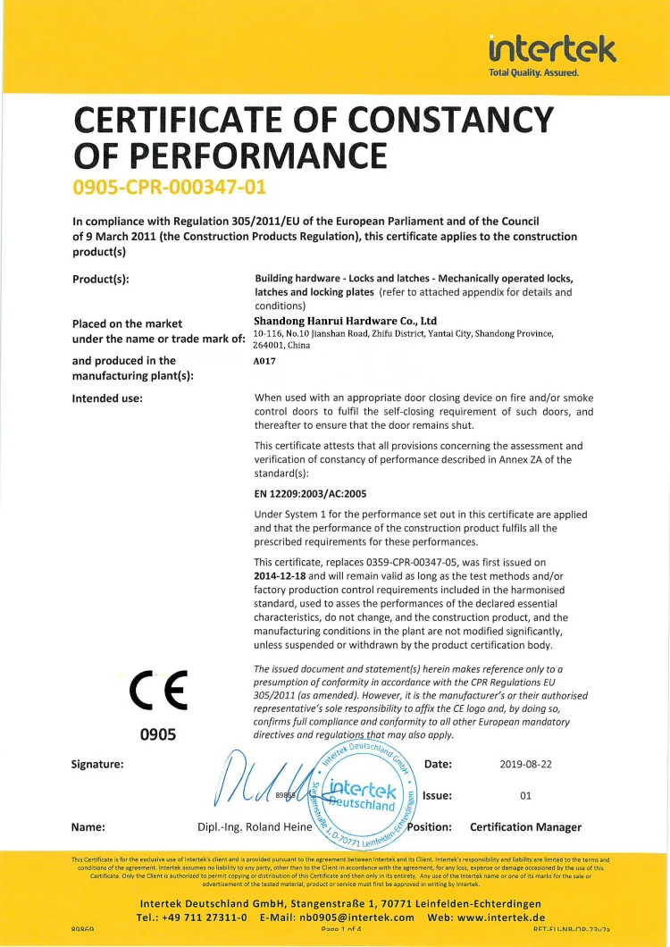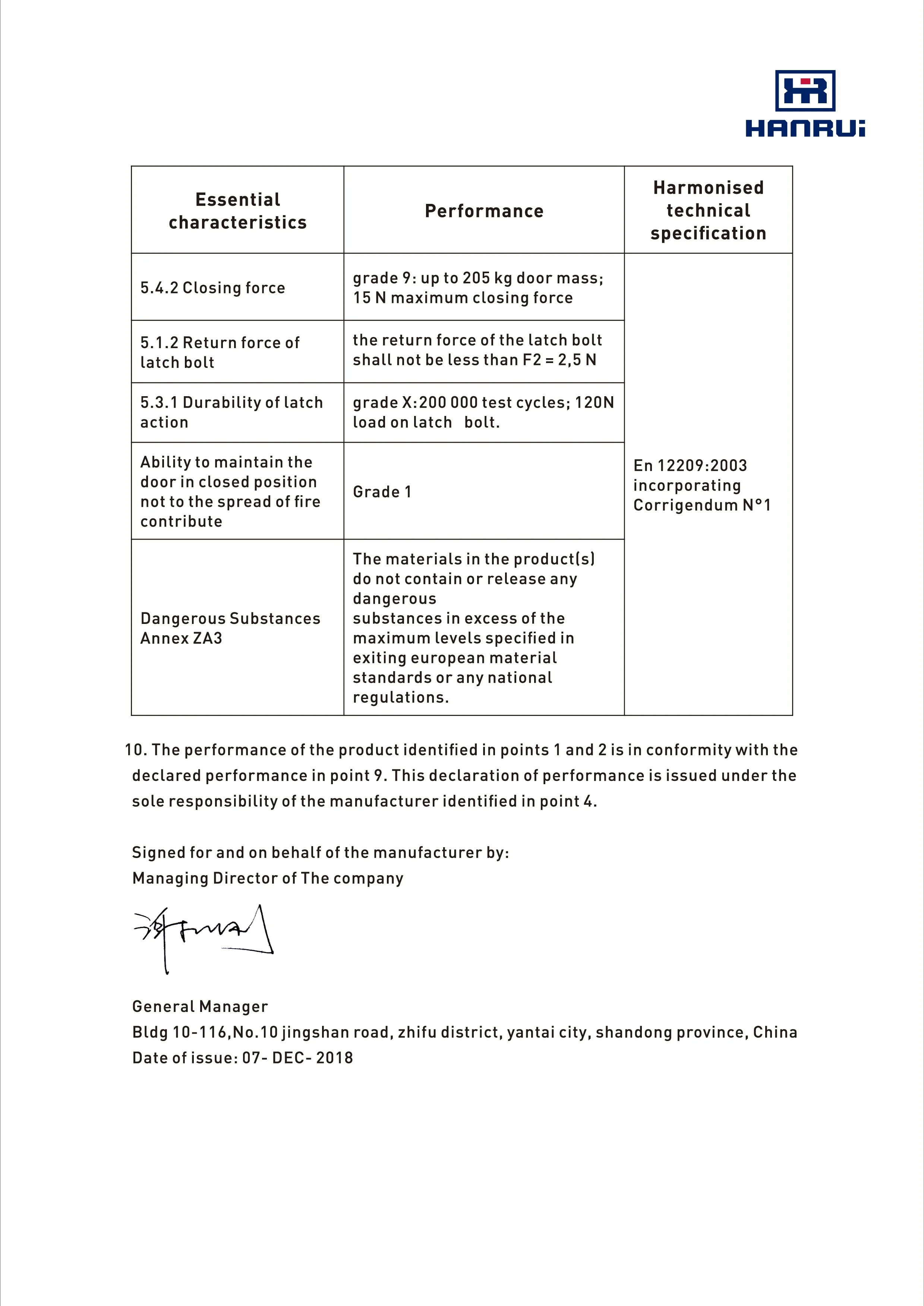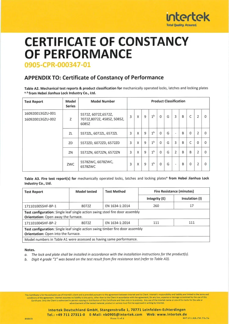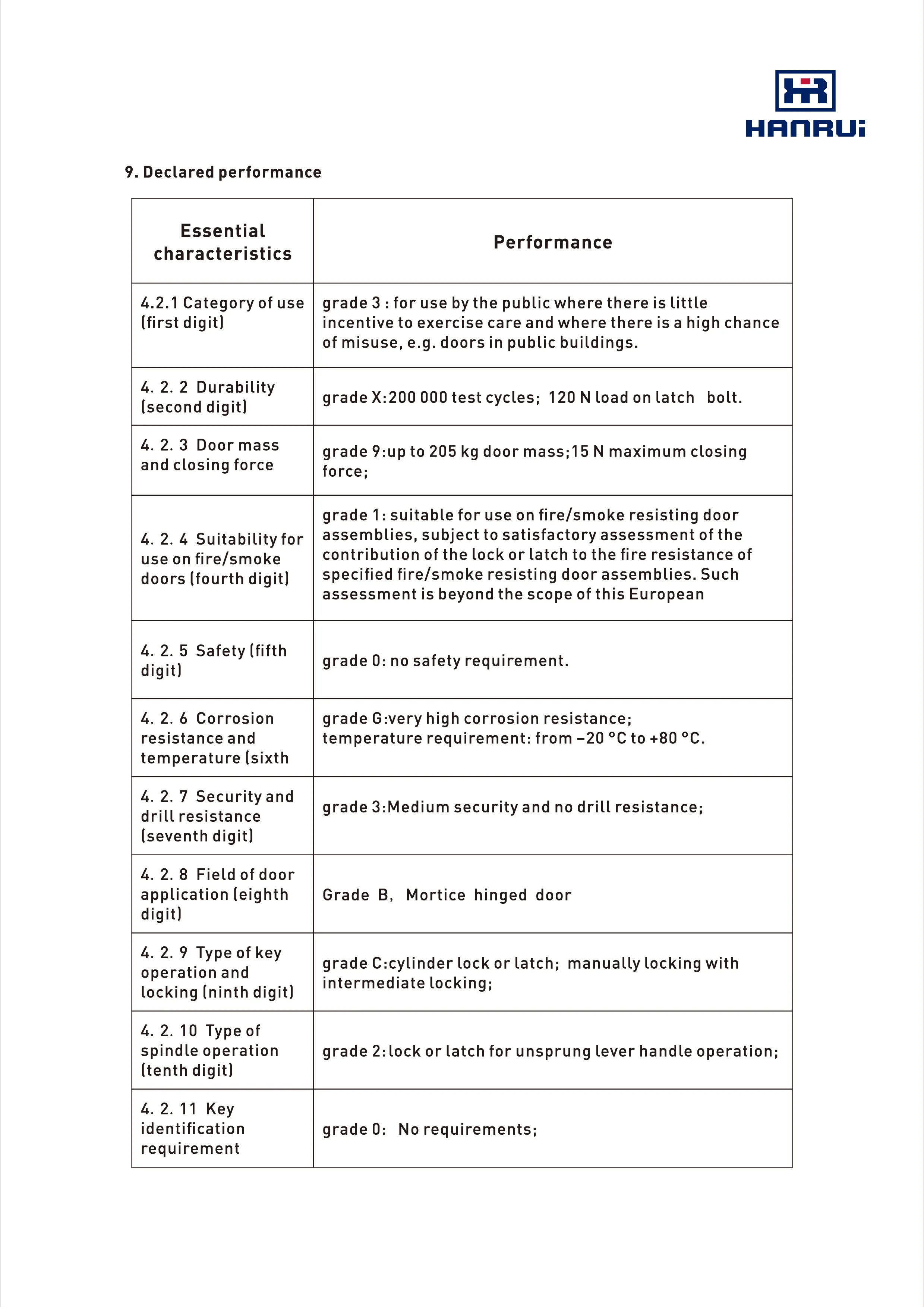 7. Compliance with EN12209 / EN1634-1 / DIN 18251