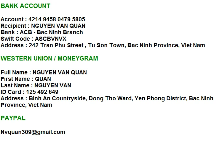 b. Cash to our dropper in Bangkok, Berlin or other locations depends on your country