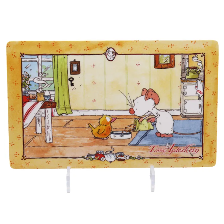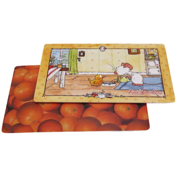 Description: | 100% white melamine with decal Breakfast board back side with 4 anti-slipping stand feets Size:23.4x14x0.3cm,LFGB standard |