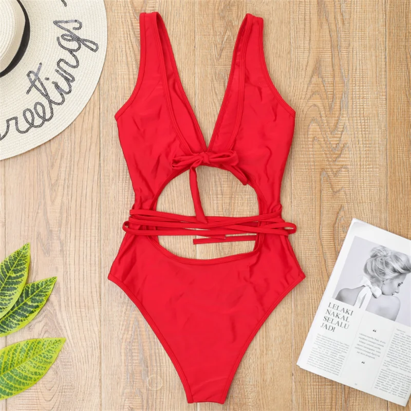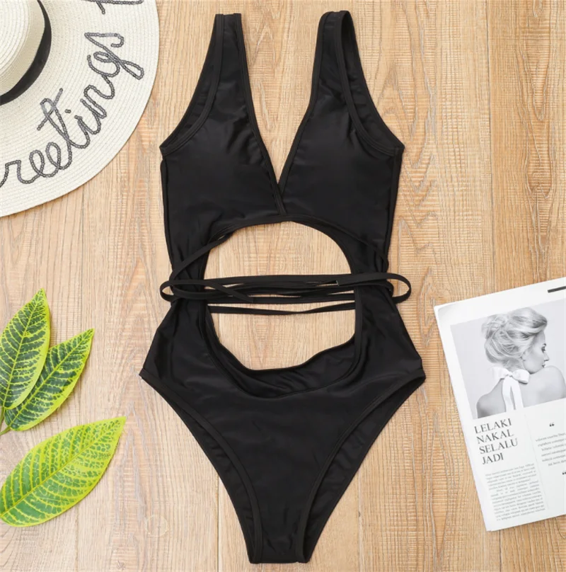 ZY4702 Private Label Custom One Piece Bandage String Swimwear Swimsuit