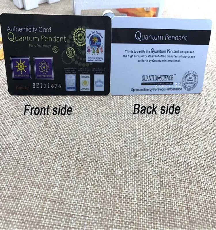 These Cards have been manufactured and produced utilizing a unique bio nano-composite ceramic powder, which provide an abundance of Far Infrared Ray (FIR) and Negative Ion technology. The Negative Ion's per card register from 2000 to 3000cc.