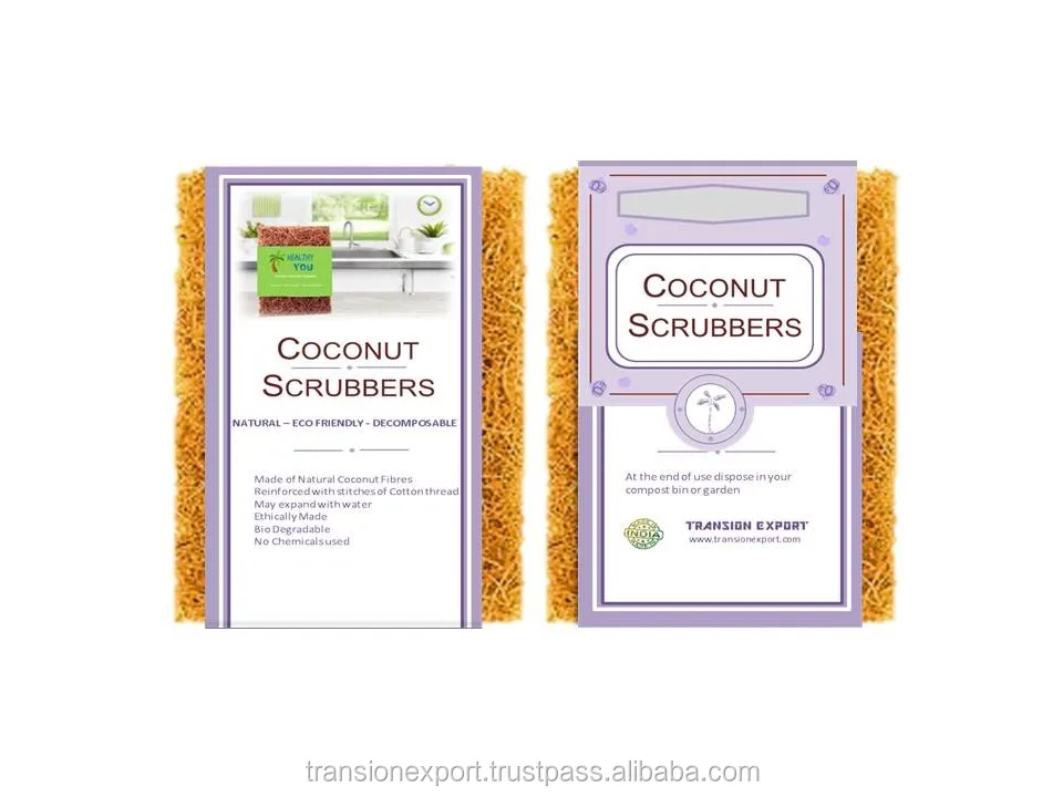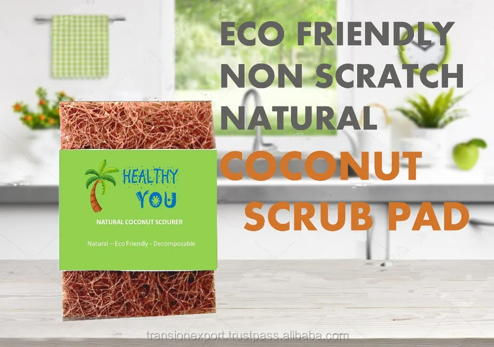 Derived from natural coconut, the coconut coir is a natural fiber. It is combined with natural latex to make the Coconut Kitchen Scourer.