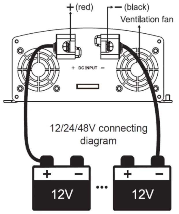 Output Wave | Pure Sine Wave | (Battery Voltage +2V) ~108V② | (Battery Voltage +2V) ~108V② | (Battery Voltage +2V) ~108V② | ||||