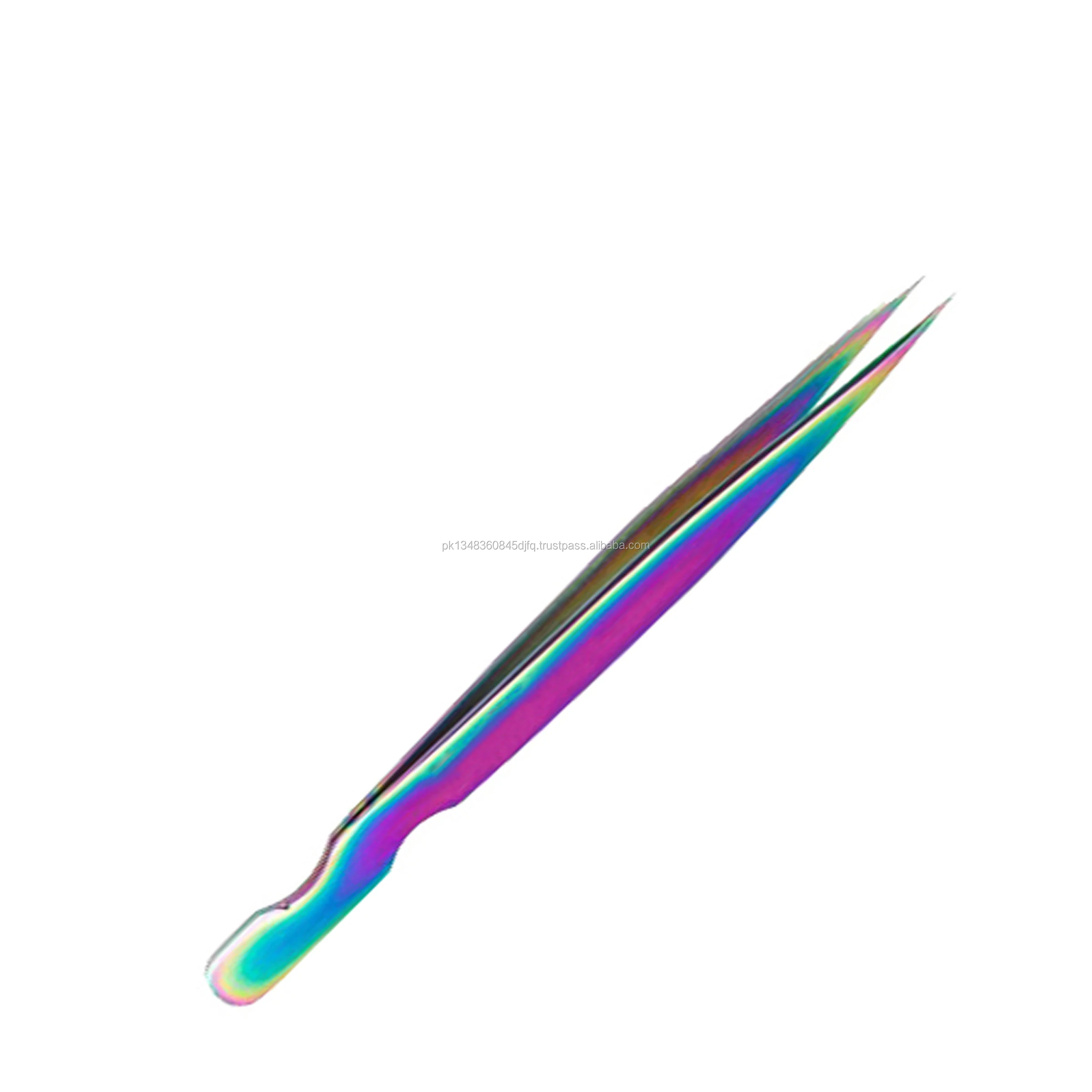 Straight with Curved Tip Eyelash Extensions Tweezers Set In Multi-Color/Rainbow Plasma.