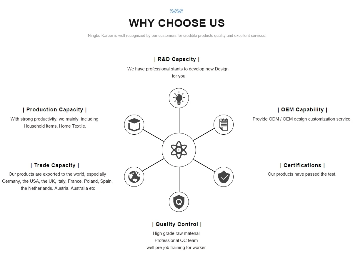 Our Services: | We have many years of experience in dealing with home textile products. And we would try our best to service for you with our high quality products and best service. Looking forward to your contact. | ||||||